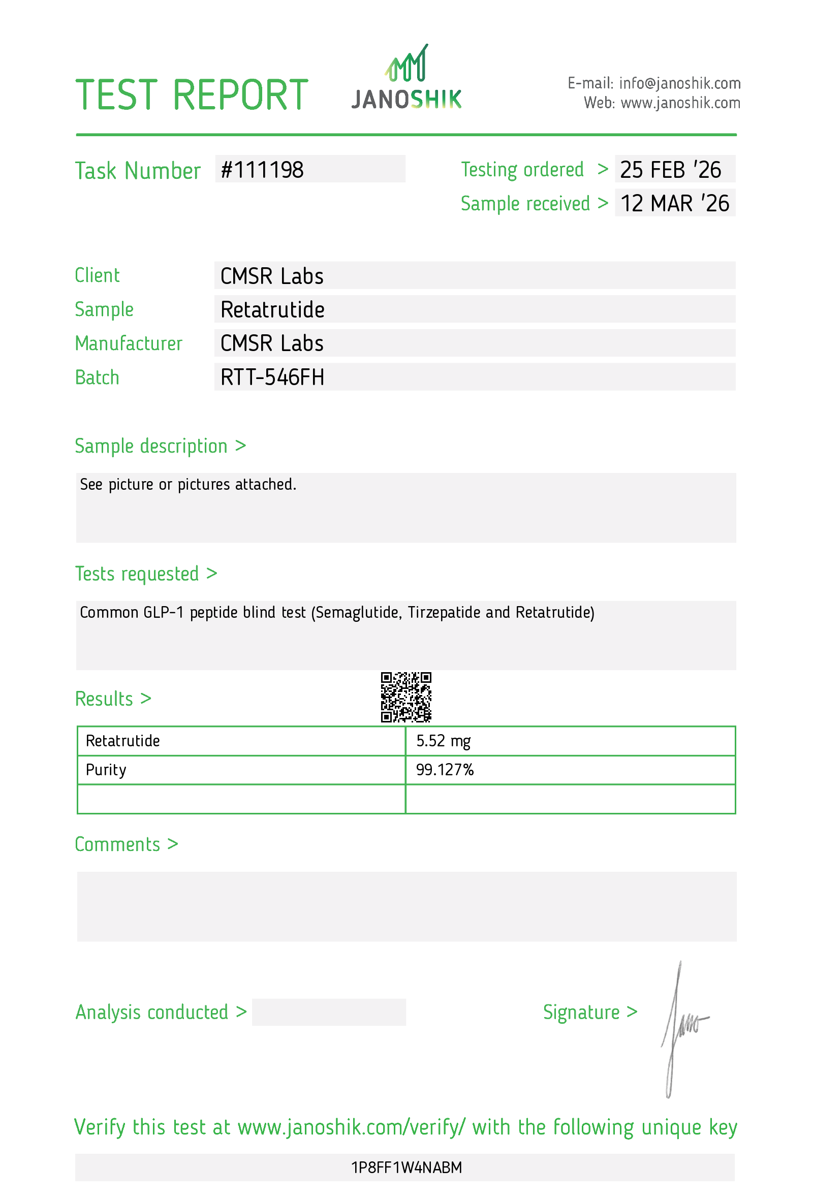 CMSR Labs proudly offers Retatrutide strictly for scientific and research purposes. In support of the research community, we ensure our products meet stringent quality standards and legal requirements. Please note that our peptides, including Retatrutide , are not intended for human consumption, diagnostic, or therapeutic procedures.